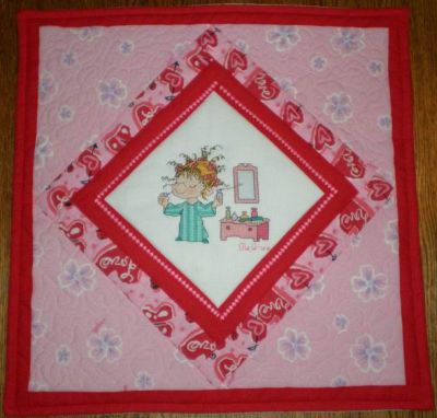 Małgosi otrzymała poduszeczkę z dziewczynką wyhaftowaną przez Olę z Warszawy uszytą przez Kingę z Jędrzejowa